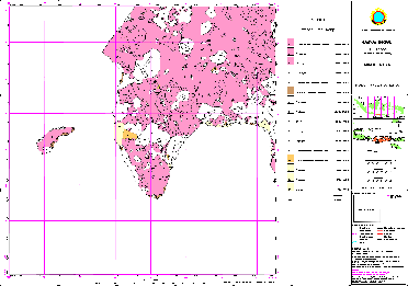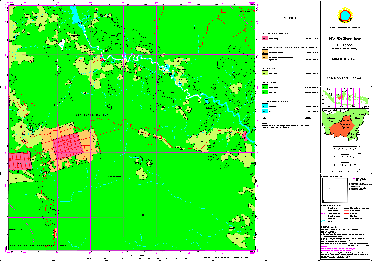 The plotted hardcopy maps follows a standard map layout based on the national grid system. Optionally, maps can be plotted based on administrative boundaries, e.g. for a District or a Subdistrict (with preparation through ILUDAdm, which ‘clips’ and aggregates map sheets).