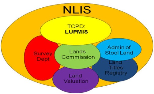 For example, land use planning depends on reliable maps, which are to be provided by the Survey Department. If land use planning takes place in built-up areas, also information about parcels (location, size, owner, status) has to be provided by the Lands Commission (through a unique parcel number, UPN).