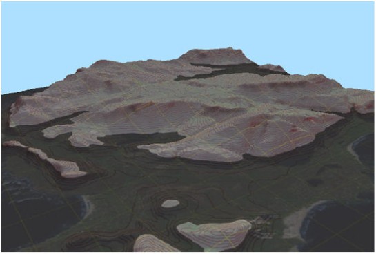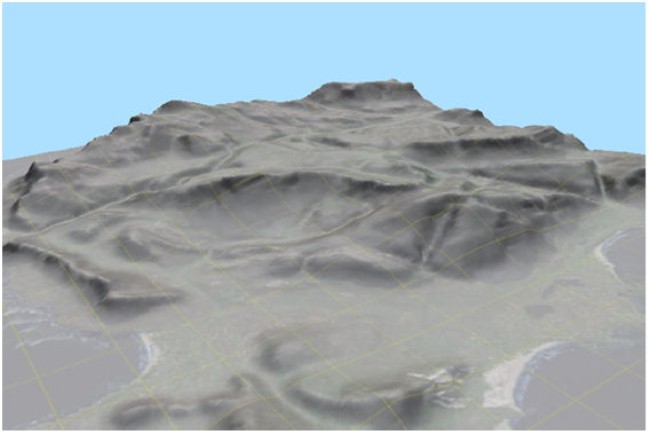 Figure A5.3: 3D visualization of terrain, with flood simulation