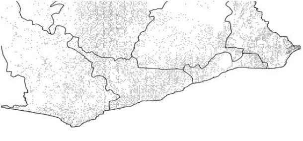Density maps take quantitative data of a DBMS and show their spatial density, for example of current or future population, of poverty (based on poverty indicators), of schools etc. Very often, they indicate a need for land use planning action.