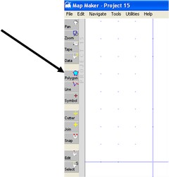 1. The standard process to digitize a new polygon (for example, land use, parcel, administrative unit) starts from the toolbar left: