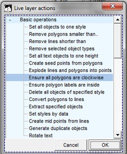 3. As additional preparation, ensure that all labels are inside the polygons: In live layer > Right-mouse > Live layer actions > Basic operations > Ensure all polygon labels are inside > OK, and save live layer. This is necessary for the seed points in the next step
