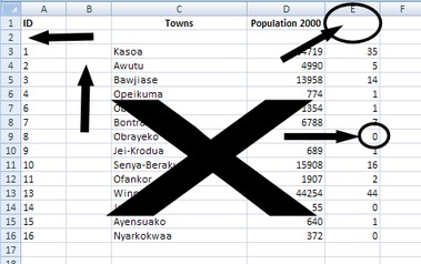 Note 3: Check, that the spreadsheet is 'clean' and does not have empty columns, rows, empty values, or columns without name in the top row.