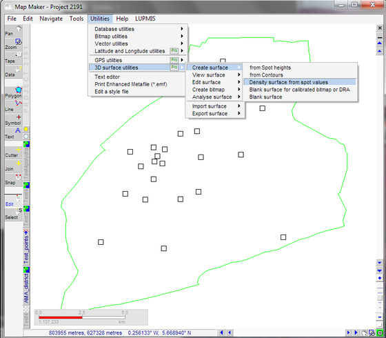Utilities > 3D surface utilities > Create surface > Density surface from spot values
