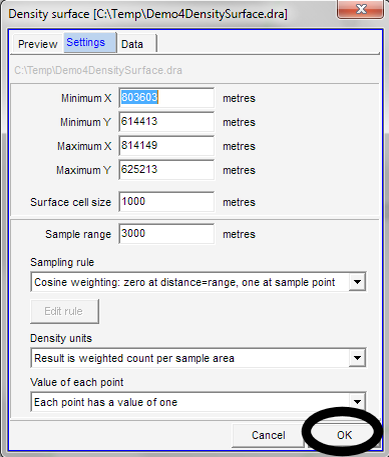 > Select DRA file of step 1 > Density surface window: Accept all as proposed > OK