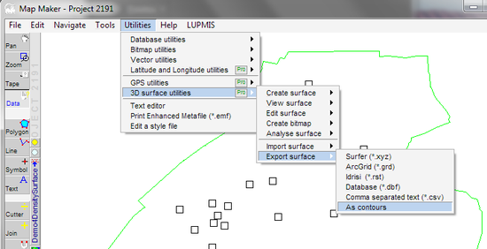 Utilities > 3D surface utilities > Create bitmap > Altitude > Select TER file created in step 2 > Open > Settings: Pixels per cell: 10 >