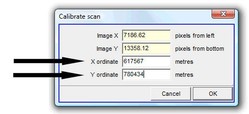 Main menu > Utilities > Bitmap utilities > Calibrate scan > Two known points (if you have more than 2 points, see below) >