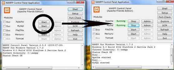 2. Start Xampp (as installed from the 'InstallationCD') > Start Apache > Start MySQL. You can then close the Xampp Control Panel.