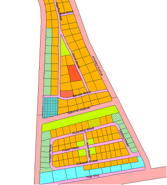 A street map containing all street names can be easily derived from a Local Plan. A street map serves for easy orientation for the public, i.e. for people not familiar with the area. It can also be used for service installations, where on-ground planning and installation are referring to streets, not to individual parcels.