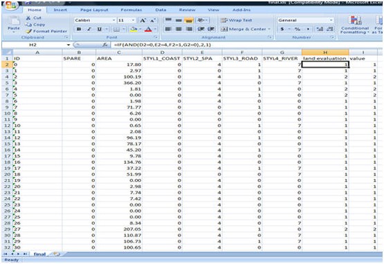 IF (an object in D2 has a value of 0 {i.e. is not within the coast bufferand the object in E2 has a value of 4 (i.e. within the structure plan area) and in F2 has a value of 1(i.e. within the road buffer) and in G2 has a value of 0 (i.e. outside the river buffer), the result should be “1” otherwise “2”.