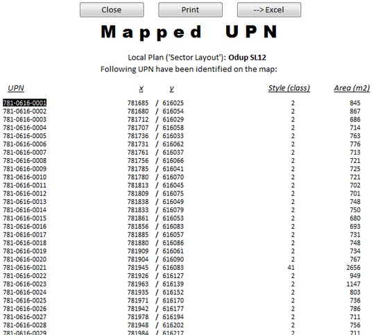 It is also possible to display a list of all mapped parcel (‘mapped UPN’) in the DRA file: