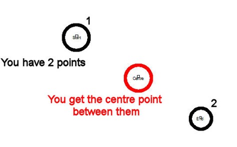 If you have 2 points and you want to know the exact centre point between these 2 points, use this tool.
