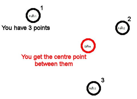 If you have 3 points and you want to know the exact centre point between these 3 points (like the centre of a triangle), use this tool.