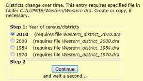 Because these data are year-specific and Districts are changing over time, you first define the year. LUPMIS will then access the District map (DRA file) of that specific year.