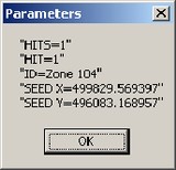 Before clicking OK ensure that the Make layer hit-able with the data query tool check box has been ticked. After clicking OK the layer is displayed. Select the Data-tool from the toolbar left and click on an object – in our example it might be “Zone 104”. As a result of clicking on the object the external program – here TestHit.exe – is launched. The program TestHit.exe displays a windows listing the parameters sent to the external program: